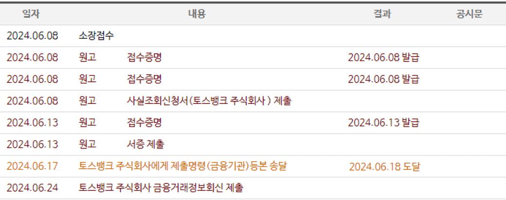’금융거래정보회신 제출‘의 의미는 말 그대로 토스뱅크에서 법원에 정보를 회신했다는 의미입니다. 법원에서 보정명령이 나올 수 있으나, 그 전에 질문자님이 이를 확인하여 선제적으로 보정하셔도 무방합니다.