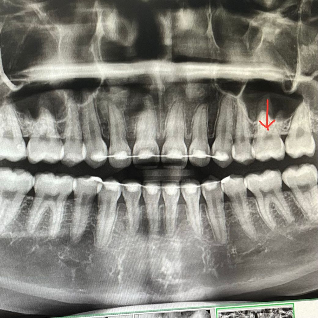파노라마 사진상으로는 실제로 오류가 있으며 특히 해당 치아의 해당 부위는 치아 뿌리 2개가 겹쳐있어서 충분히 왜곡될 수도 있습니다.