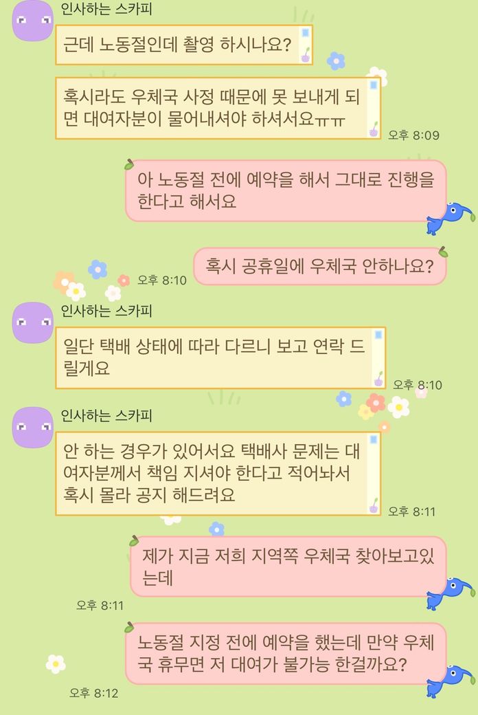 근데 이번주 금요일이 갑자기 노동절로 휴무일이 되면서 택배를 그날 바로 못보내게 됐어요.