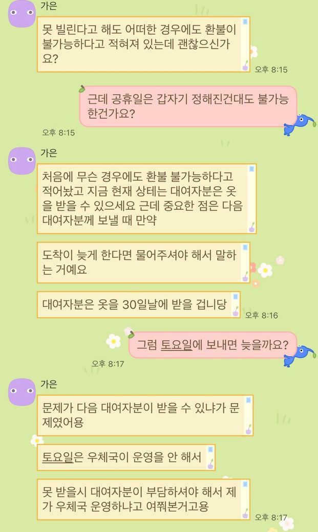 번개장터 옷 대여 환불이 안된다는데 법적으로 정말 불가능한가여?
