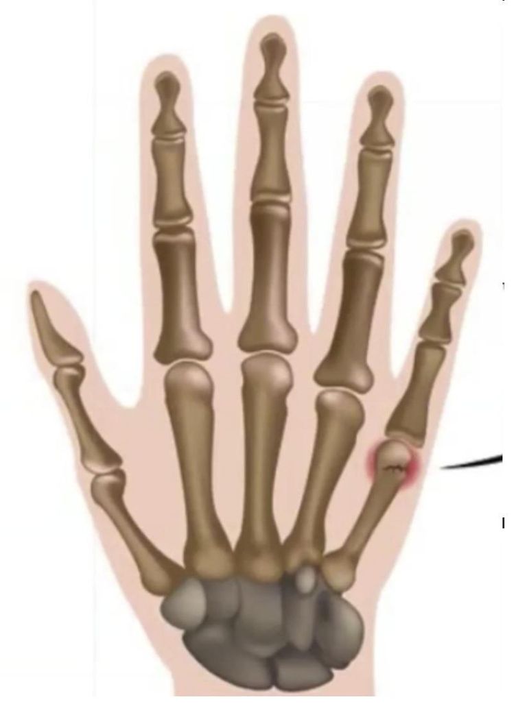 새끼손가락의 "손허리뼈 머리" 부분 통증이 있습니다.