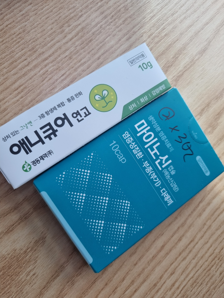 조갑주위염에 애니큐어연고를 바르면서 마이노신캡슐을 먹어도 효과가 있어요.