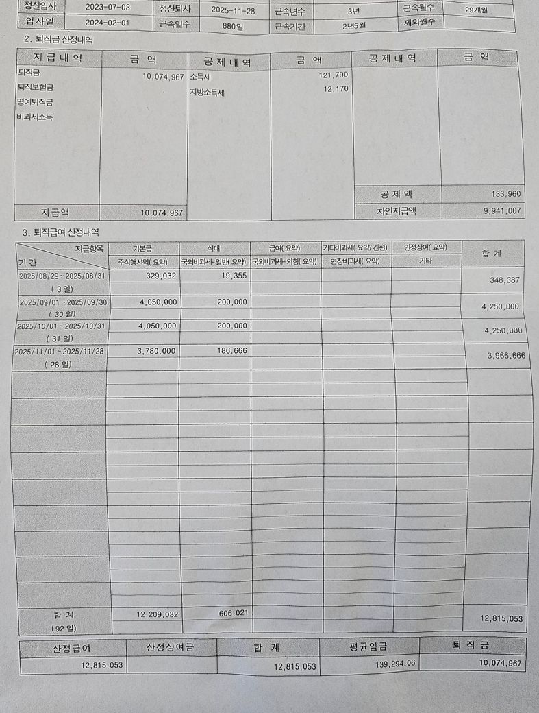 이럴 경우 퇴직금이 얼마고 세금으로는 얼마가 빠질까요?