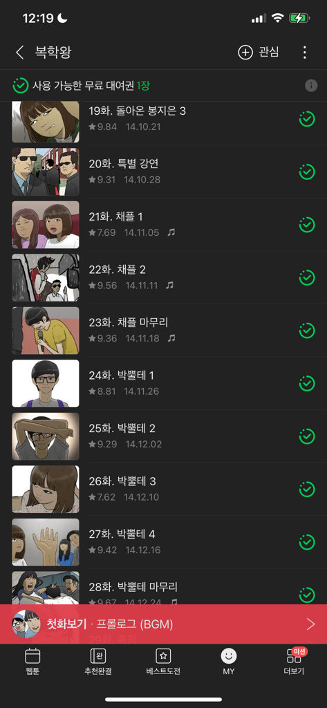 오랜만에 웹툰 보려니깐 완결된 웹툰들이 몇화정도는 무료로