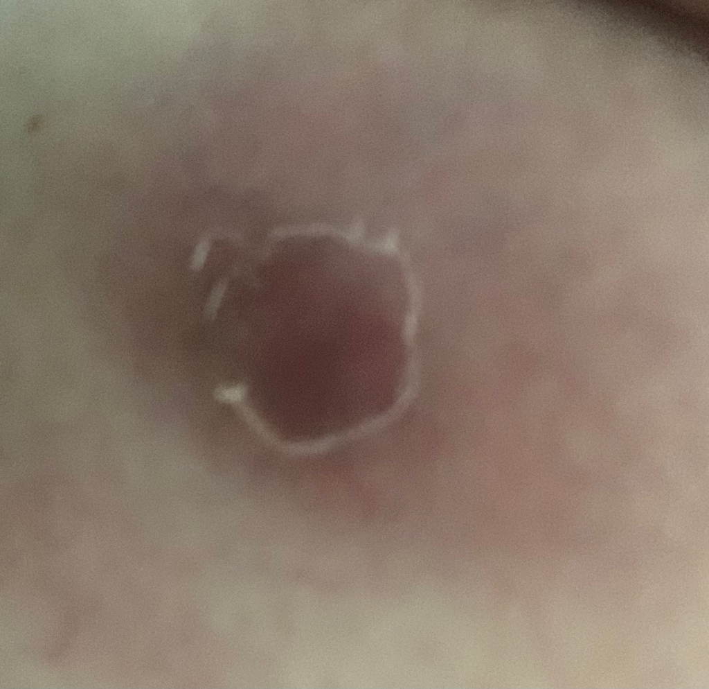 젖꼭지 아니고 하룻밤 사이에 왼쪽 밑가슴에 이런게 생겼는데 세게만지면 아프고 살짝만지면 약간 간지러운 느낌 들어요 지식인에 물어보니까 표피낭 같다고 하는데 찾아보니까 표피낭종은 가운데에 작은 구멍같은게 있다고 하는데 이건 약간 어디 문댄거처럼 엄청 반질반질 해요 사진처럼 빛이 비칠 정도로요ㅠㅠ 엄청 얇은 막같은게 씌워진 느낌?.. 아주 살짝 튀어나와있기도 한거같아요 크기는 한 오십원짜리 크기 정도 되는거 같고 그 주위로 살이 붉게 변해있어요 글고 원래는 두번째 사진처럼 하얀 껍질이 살짝 벗겨져있었는데 씻으니까 사라졌어요 표피낭종이 맞을까요?..