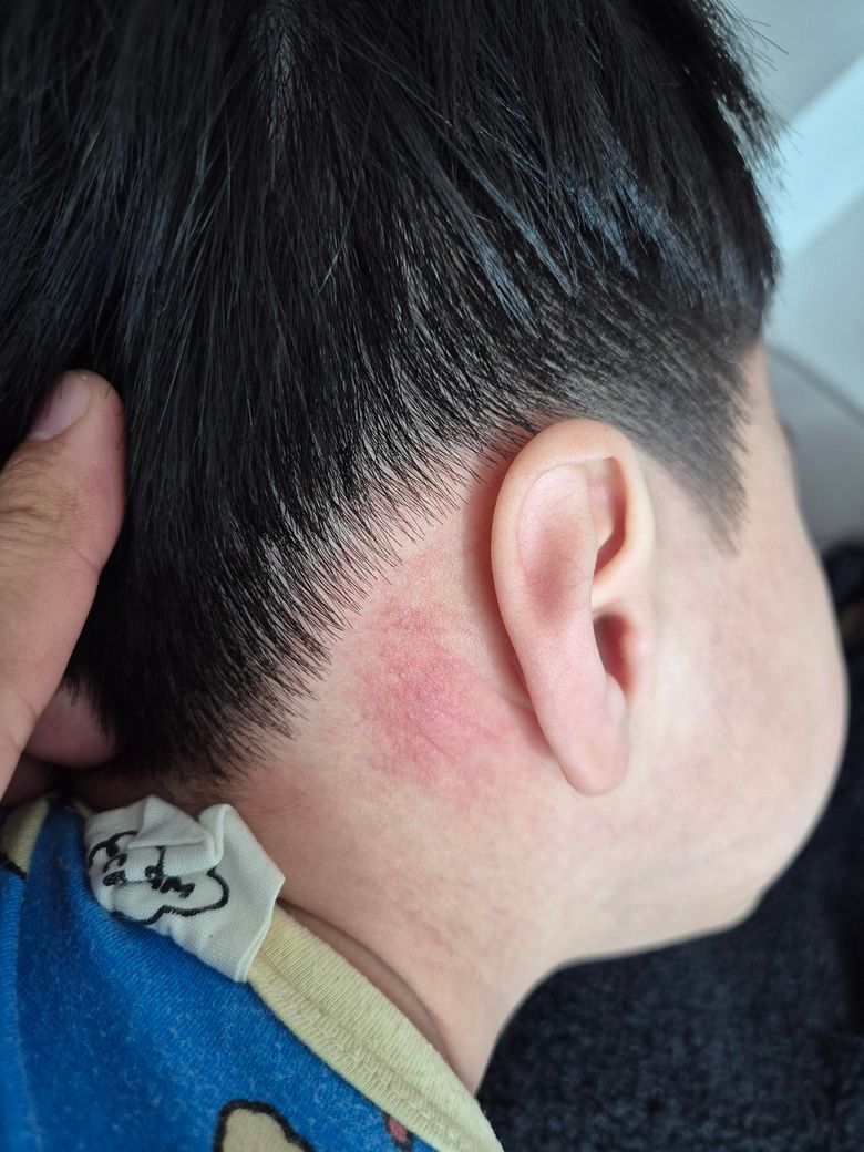 아이 자고일어났더니 귀 뒷쪽이 빨강게...