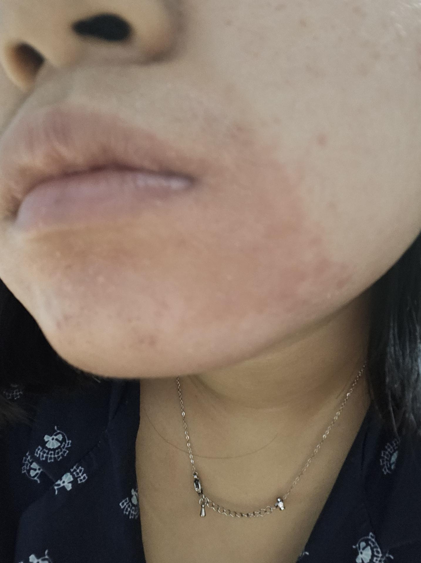 사진상 입 주변과 턱에 경계가 비교적 불분명한 홍반, 각질, 자극 소견이 보이며 약물 과자극으로 인한 자극성 접촉피부염 또는 구순주위피부염 초기 양상이 의심됩니다. 현재 화끈거림과 가려움이 있으면 아젤리아 크림과 트리파로텐은 즉시 중단하는 것이 맞고, 이 상태에서 계속 바르면 악화될 가능성이 큽니다. 더마톱 연고는 증상이 심할 때만 아주 얇게 하루 1회, 3일 이내로만 사용하고 그 외에는 보습제만 사용해 피부장벽 회복을 우선해야 합니다. 세안은 미온수로 최소화하고, 립밤·치약·마스크 마찰도 일시적으로 줄이세요. 3~5일 내 호전이 없거나 번지면 피부과 재진이 필요합니다.