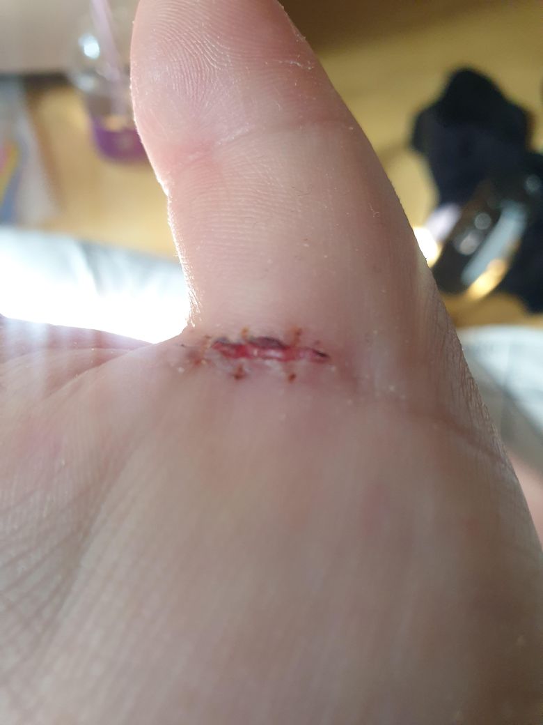 손가락 부위 꼬매고 실밥제거했는데 상처부위가 아물지않고 벌어졌는데 그대로 나둬도 괜찮을까요? 물에 닿아도 괜찮을까요? 다시 봉합해야하는건 아니겠지요?