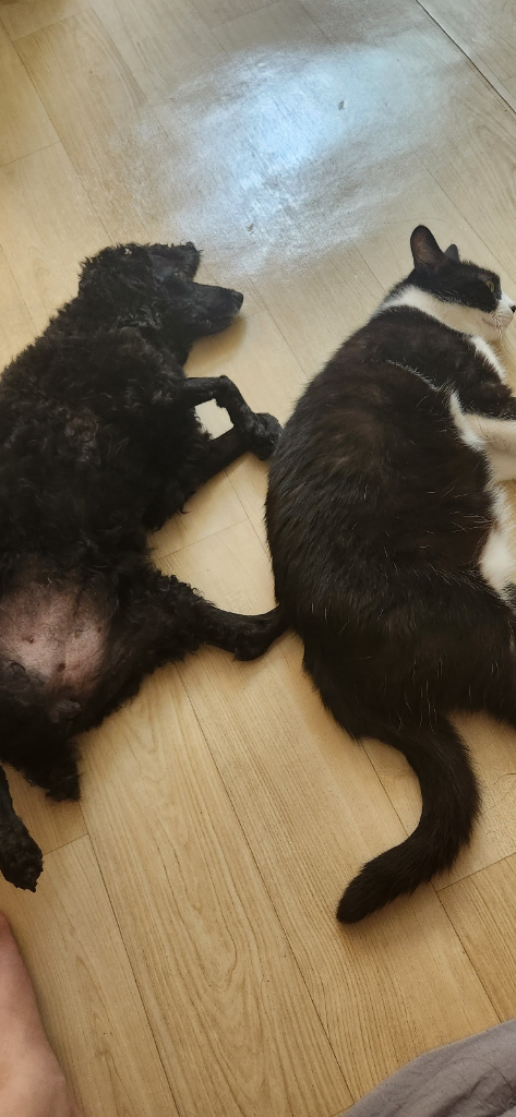 고양이와 같이 살고 있고 고양이가 강아지를 매우 의지하고 지내는 중입니다.