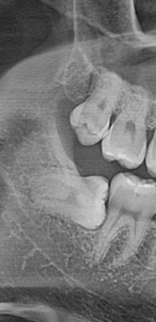 기울어져 나고 있는 사랑니의 경우에는 앞에 이물질이 저류하게 되어 앞의 치아에 충치를 발생시킬가능성이 높아요.