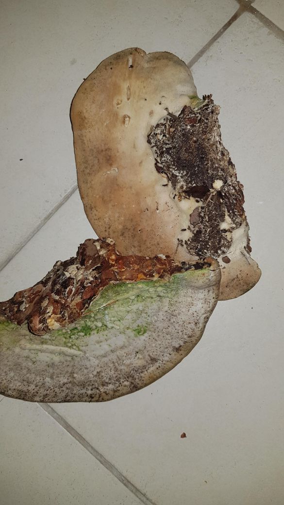 사진으로 보이는 외형은 말굽버섯으로 보입니다 잔나비걸상버섯은 비슷하게 생겼으나 절단면이 초콜릿색으로 현재 보이는 절단면과는 다릅니다 말굽버섯은 무맛이고 물에 담가도 색이 변하지 않지만 잔나비 걸상버섯은 매우쓴맛이 나고 물에 담가두면 갈색으로 변합니다 말굽버섯은 말려서 끓여드시는 것이 좋고 면역력개선 항암 당뇨증상 개선에 도움이 됩니다 그러나 절대 과량 드시면 안되고 하루 1~2잔만 연하게 끓여서 드세요