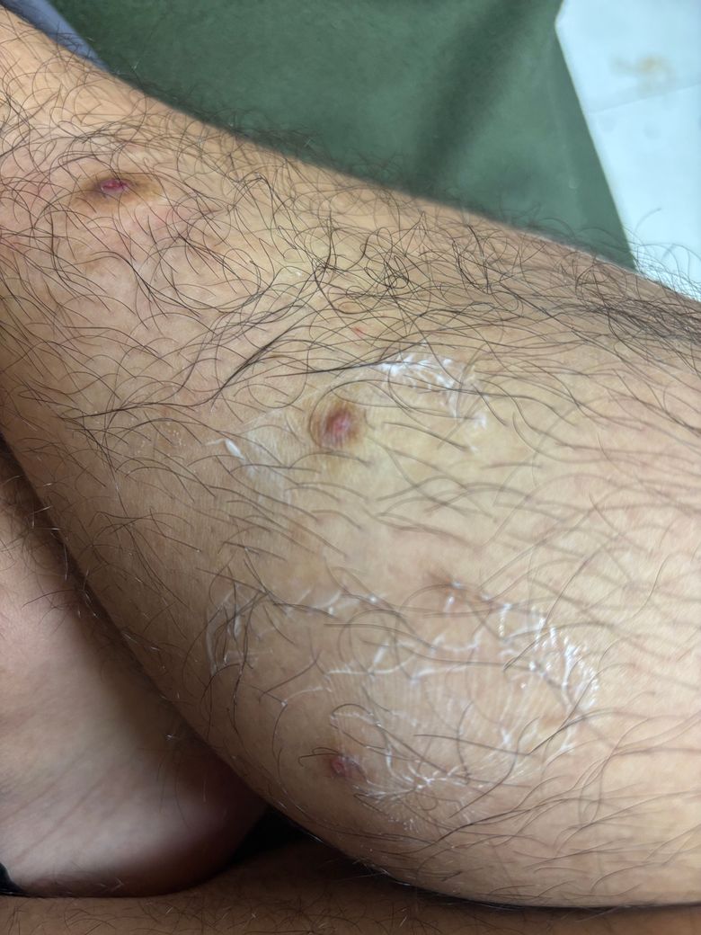 다리 에 무슨상처가났는데 3-4개월은된거같아요 밤에 좀 간지럽고 진물 나는거같은데 뭐에요?