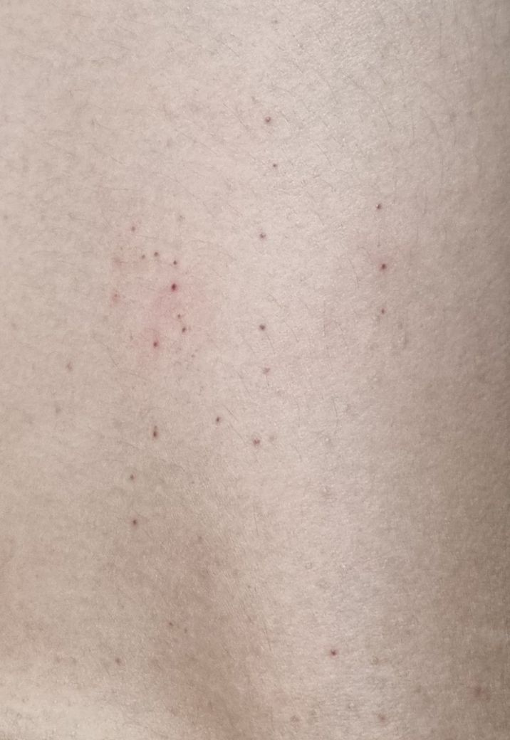 오른쪽 허벅지쪽에만 붉은 점이 생겼어요