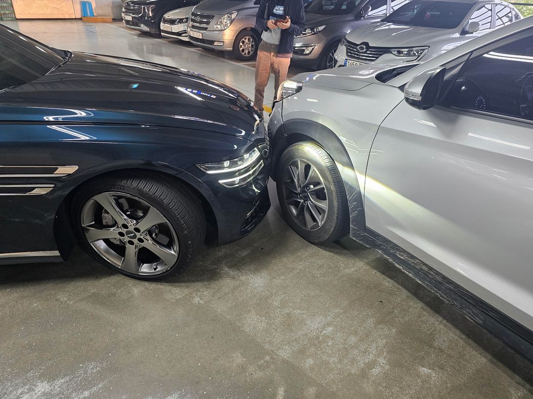 주차장내 사고입니다.저는 차가 보여서 멈췃지만 상대편 차가 우회전을 크게 돌다가 그대로 제차 운전석 앞 범퍼를 그대로 때려 박았습니다 과실이 어떻게나올지 궁금합니다