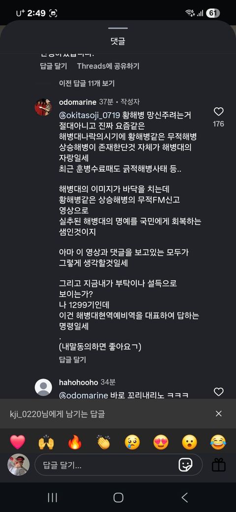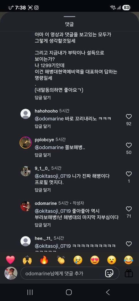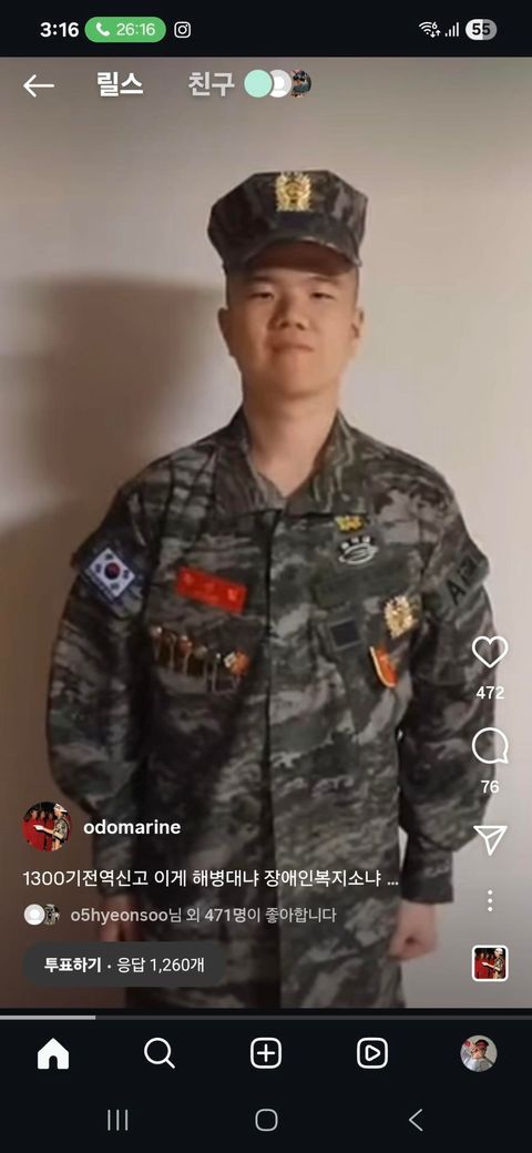 제 유튜브에 있던 해병 전역식 영상을 무단으로 도용하고 있던 어느 인스타 페이지를 발견 했습니다.
