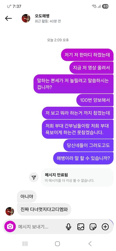 제가 나왔던 부대와 저를 생각하며 챙겨주던 간부님들을 모욕하고 제 얼굴을 팔아서 공연성이 있는 인스타로 현제 따돌림을 하고 있습니다.