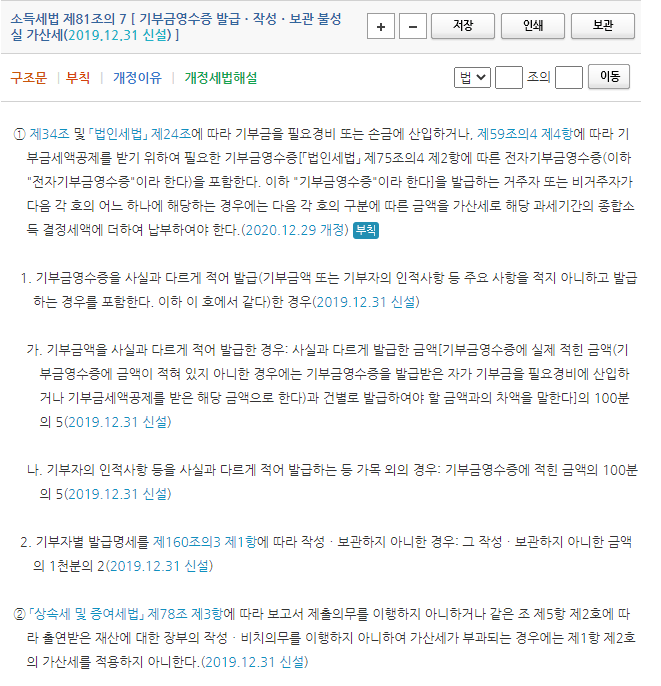 법인세법 제75조의 4 【기부금영수증 발급ㆍ작성ㆍ보관 불성실 가산세】