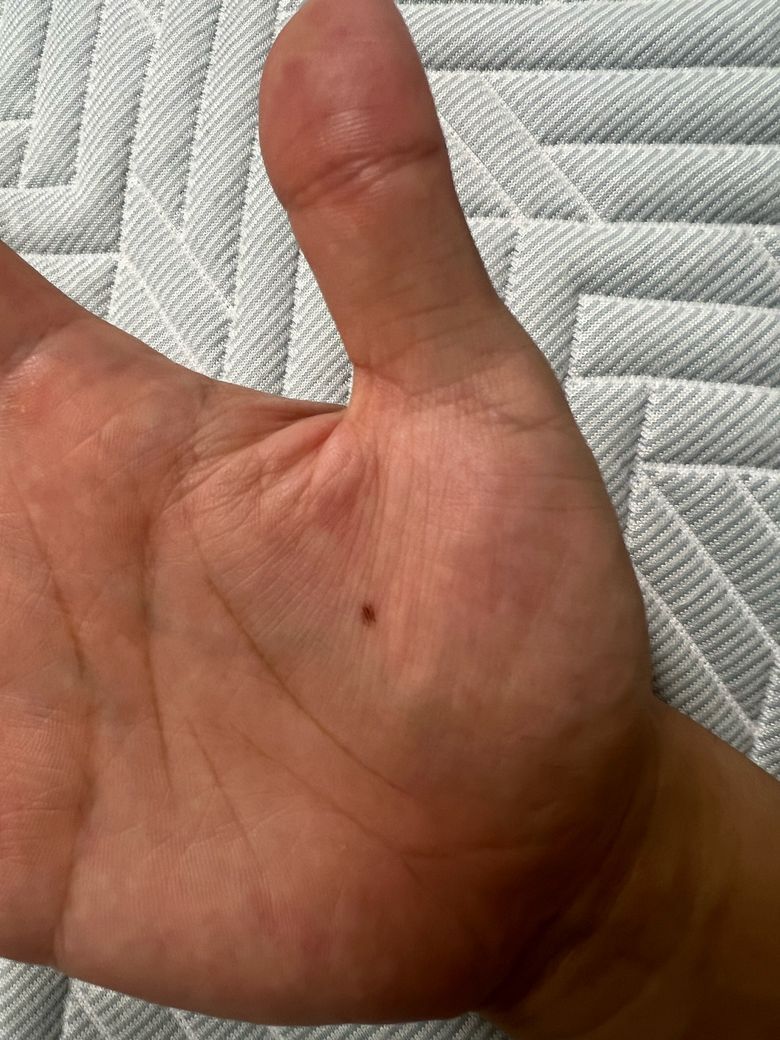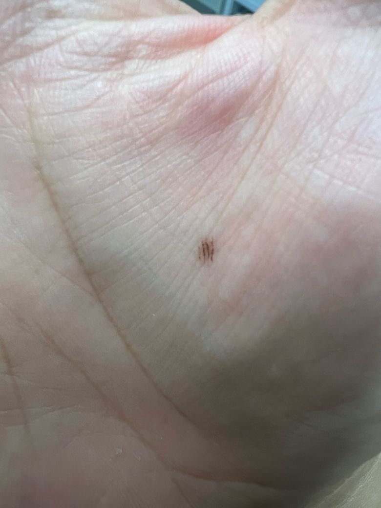 손바닥에 갈퀴모양으로 이상한 점이 생겼어요