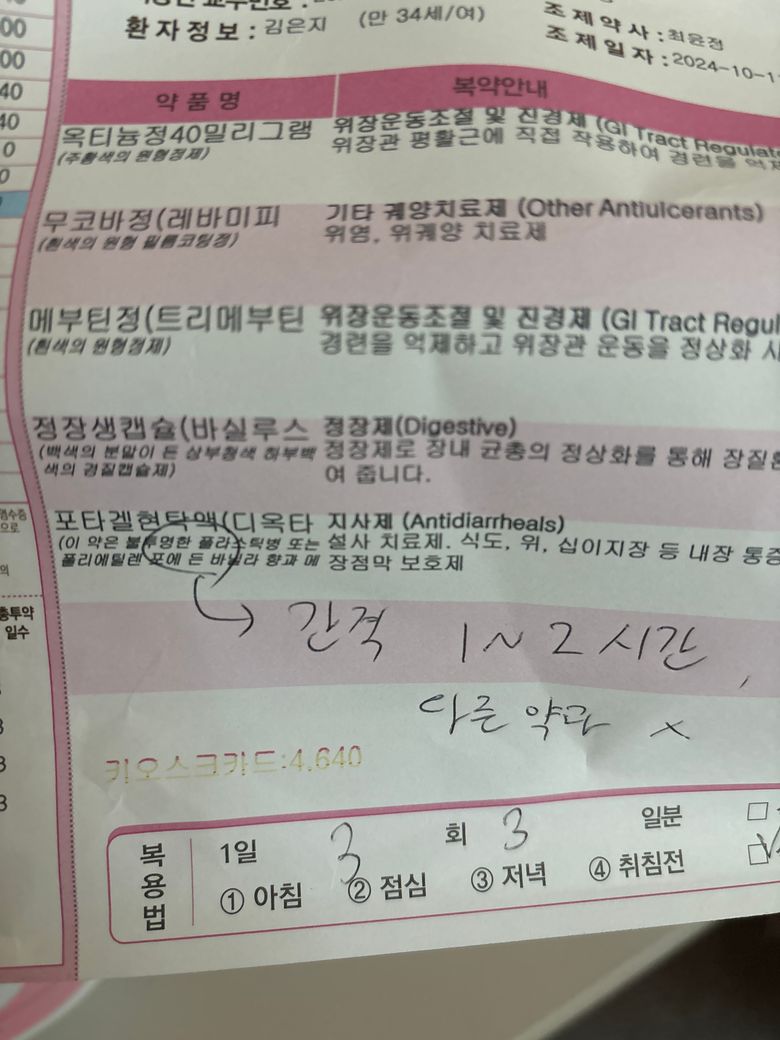 옥티늄정 무코바정 메부틴정 정장생캡슐