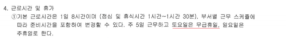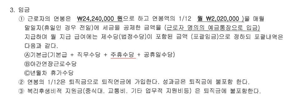 계약서 내용에는 기본급에 주휴수당이 포함, 그리고 토요일은 무급휴가라고 명시되어있기에 주휴수당은 받을 수 없다하시더라구요.