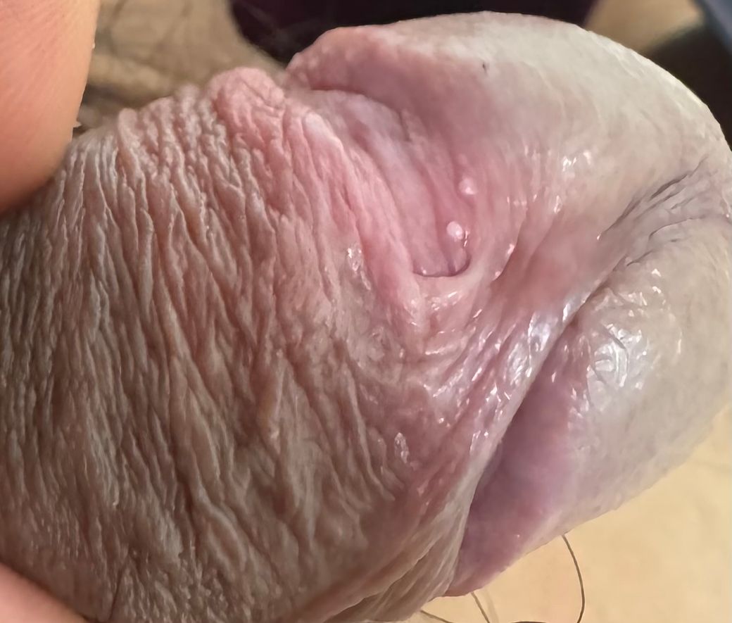 올려주신 사진만으로는 제한이 있으나 헤르페스 감염 보다는 음경 타이슨 샘이 생각됩니다.