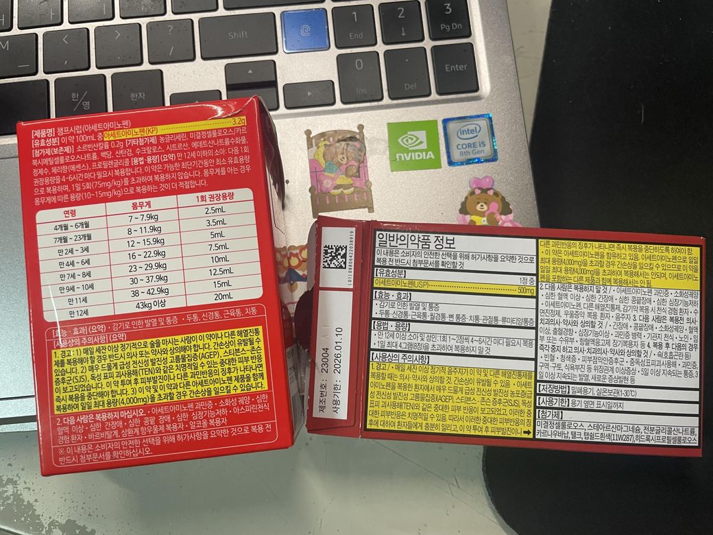 어린이용 해열제 ‘챔프 시럽’과 ‘타세놀’있는데 이 둘 중 하나 먹어도 될까요?