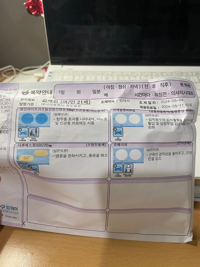 (병원에서 처방받은 두통약)