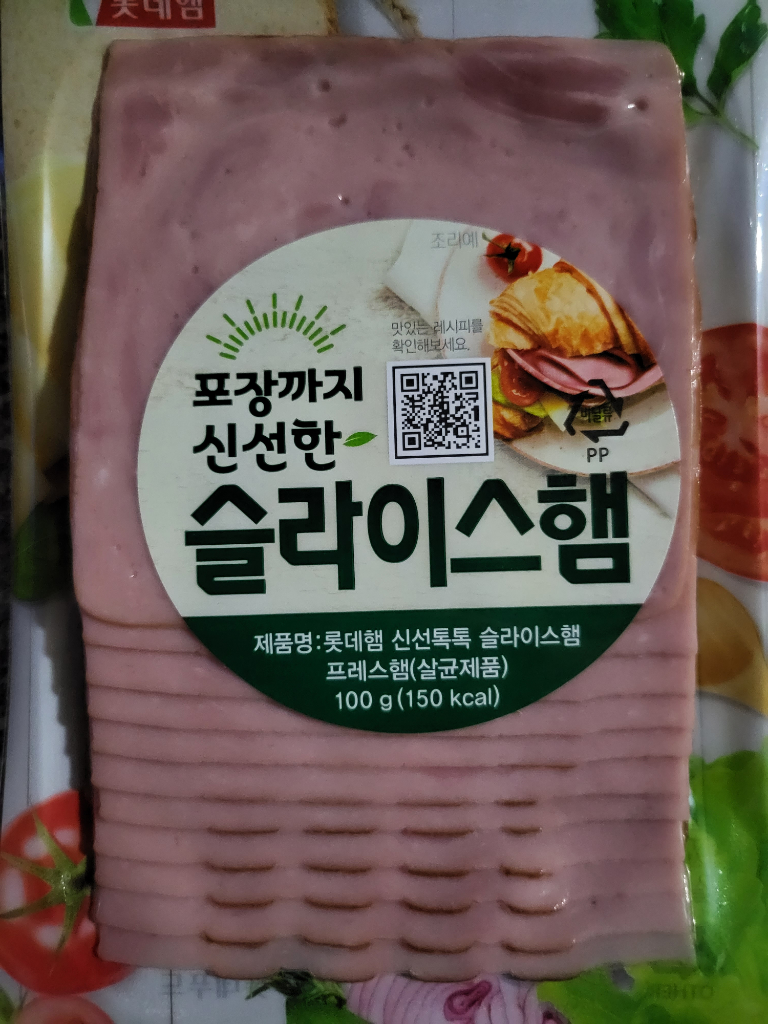 이런 슬라이스 햄은 가공되어서 나온거라 바로 먹어도 무방하나 후라이팬에 살짝 구워드시면 더 맛날듯요.