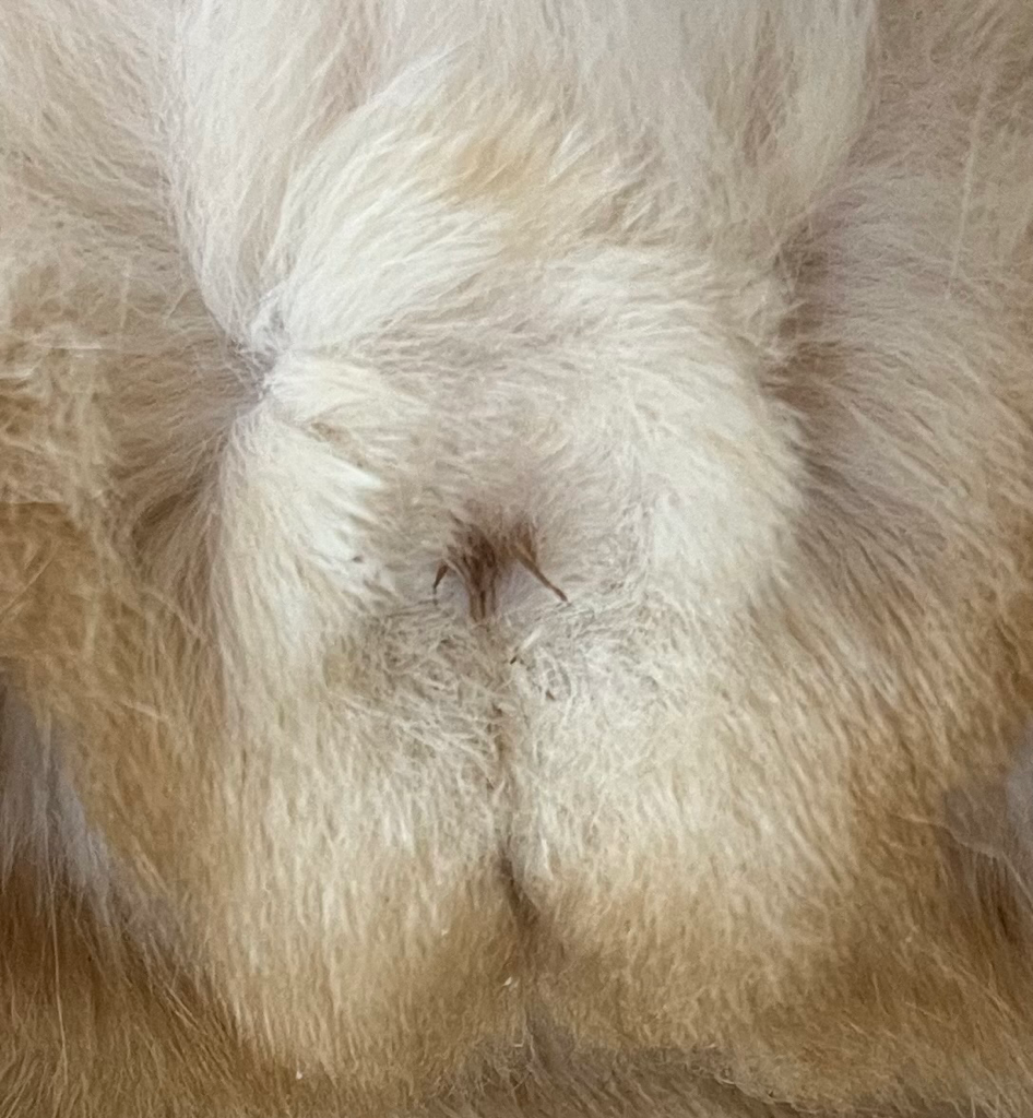 현재 사진상으로 보이는 색변화를 보고 혈뇨라고 단정할 수는 없지만 적어도 그루밍을 잘 하지 않고 있다는것을 의미하니