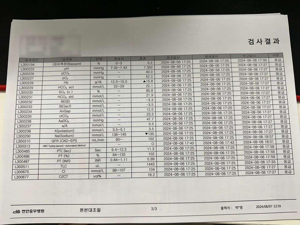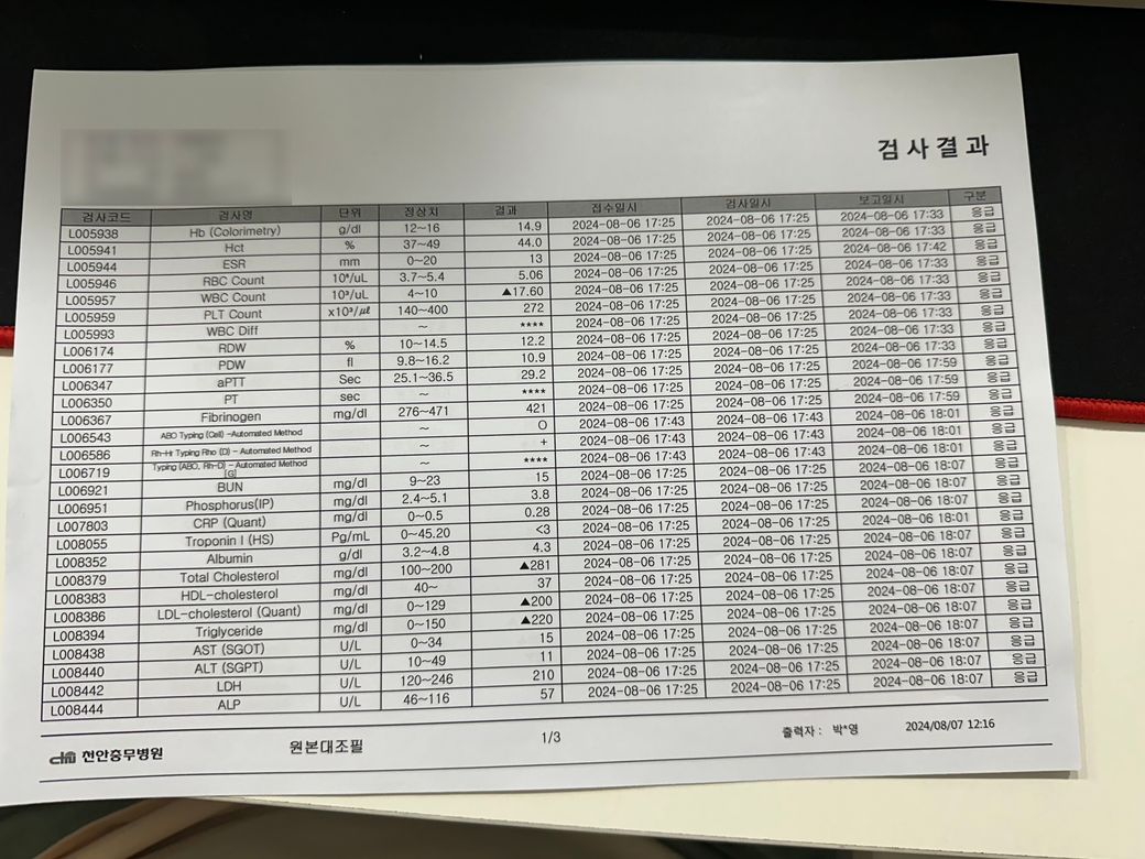 어제 갑자기 두통+메스꺼움+식은땀과 함께 혈색이 너무 안좋아지고 걸어다니기가 힘들정도여서 응급실을 가서 혈액검사를 했어요.