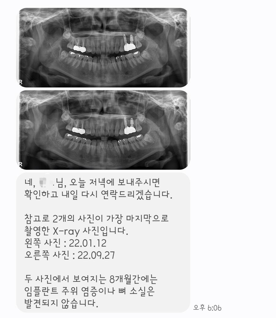 임플란트 엑스레이 사진 확인 부탁드립니다.