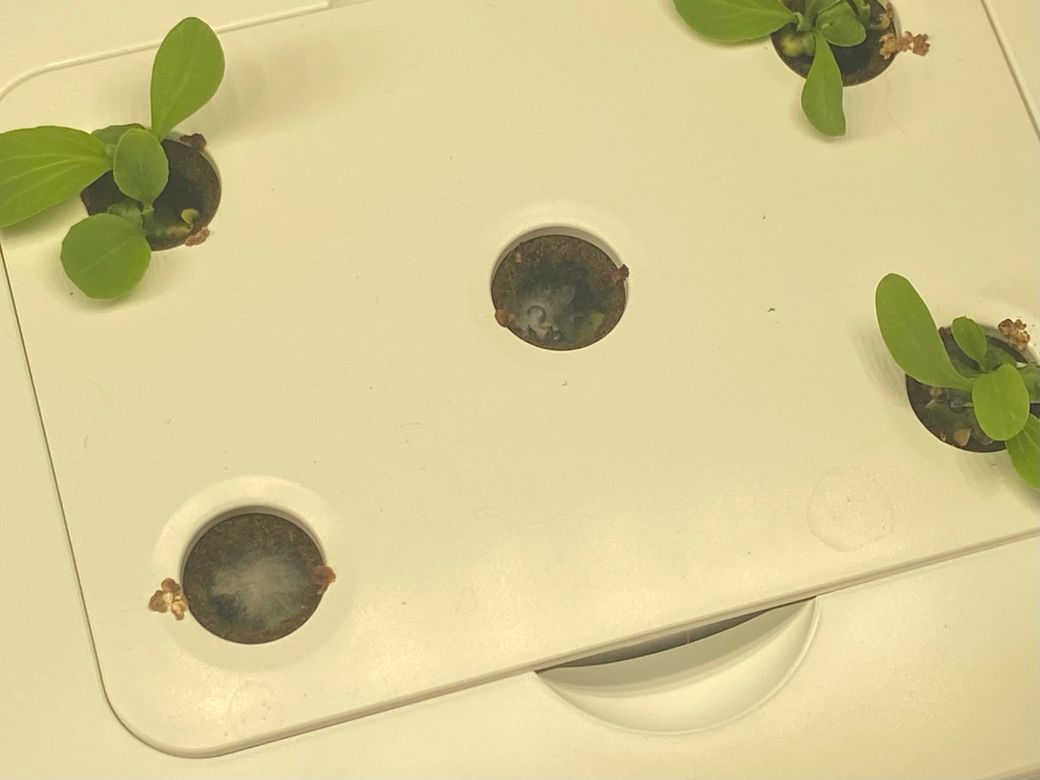 정상적인 새싹이라면 곧바로 초록 떡잎이 나와야 하는데 곰팡이만 피고 있으면 발아 실패로 봐야 합니다.