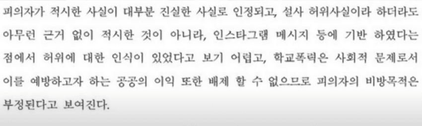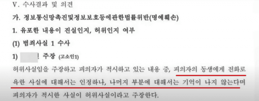 (다)수사결과 및 의견에서 "피의자가 적시한 사실이 대부분 사실로 인정되고, 설사 허위 사실이라고 하더라도 아무런 근거 없이 적시한 것이 아니라, 인스타그램 메시지등 (증거에) 기반 하였다는 점에서 허위사실 유포라고 보기 어렵다." 라고 적었는데, 이 말의 뜻은 (나)수사관 의견에서 상반된 당사자의 진술 중 폭력과 금품갈취에 대한 내용들이 대부분 사실로 인정된다는 의미입니까?