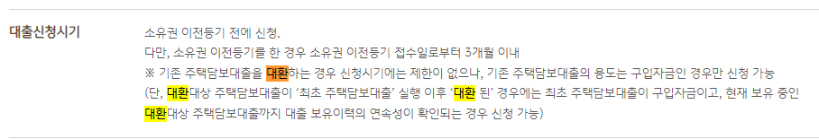 대환대출이 아닌 디딤돌 대출은 소유권이전등기 접수일로부터 3개월 이내입니다.