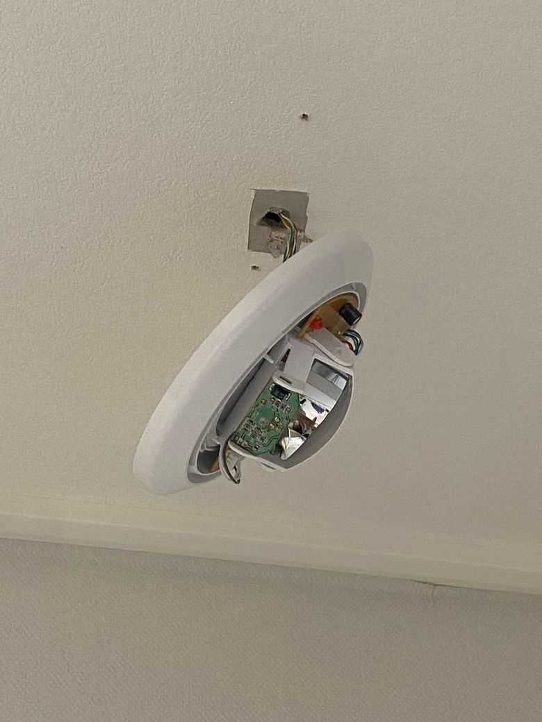 아파트 천정에 부착되 있는 열선 돔 감지기 자리에 조명 설치 가믕 한가요?
