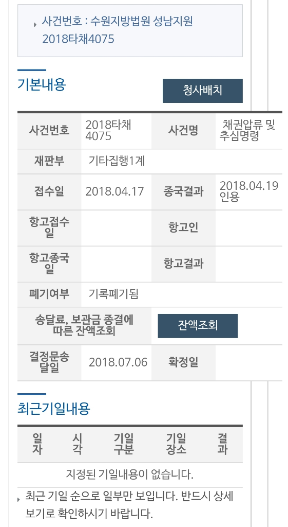 통장이 압류되어 있는 상황이라 나의 사건번호를 검색했는데요