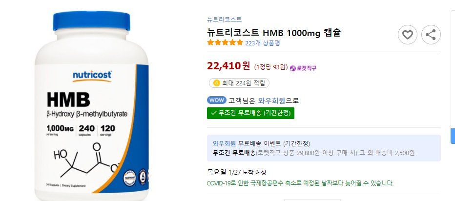 L-아르기린 1000mg 캡슐 1일 2회 , HMB 1000mg 캡슐 1일 1알 2회 복용