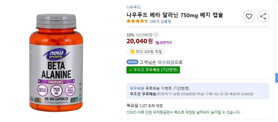 베타 알라닌 750mg 캡슐 1일 1~3알씩 4~6 복용