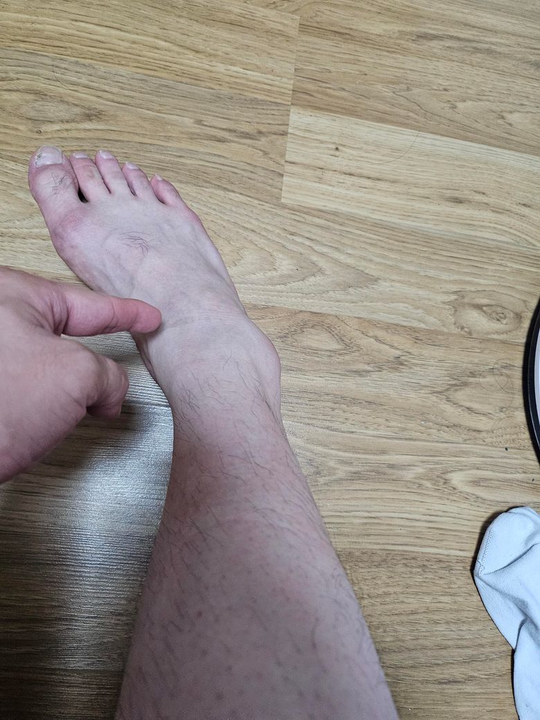 첫 번째 사진이 다친 곳이고 두 번째 사진은 왼쪽 복숭아뼈 아픈 쪽이고(어제부터 아프던곳) 세번째 사진은 오른쪽 복숭아 뼈이고 여기도 아팠던 거 같은데 지금은 괜찮습니다 손가락 2개로 가리킨곳이 요즘 아픕니다...