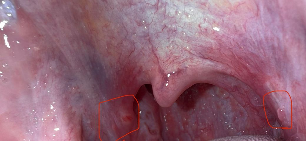 연구개 주변에는 좌우 대칭으로 비슷한 작은 융기가 보일 수 있습니다. 오래 유지되고 증상 없으면 정상 범주에 포함되는 경우가 많습니다.