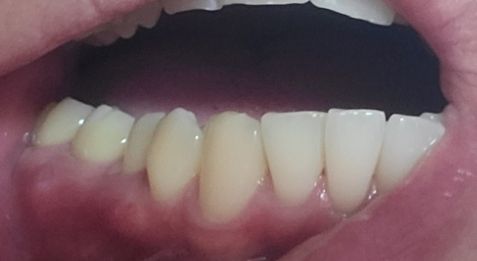 현재 사진상으로 첫번째 사진에서 잇몸이 돌출된부위에 염증이 있을 가능성이 있기에 치과에 방문하여 진료를 받고 필요에 따라 잇몸치료가 필요로 될수 있습니다.