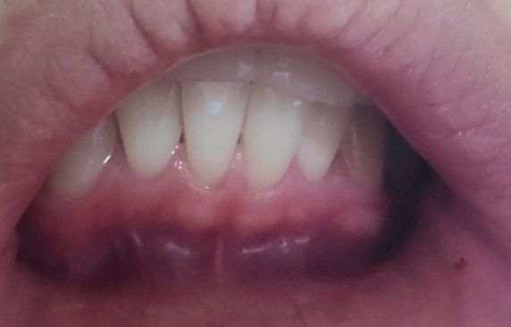 전반적으로 위보다 아래 잇몸 퇴축이 보다 진행되었습니다.