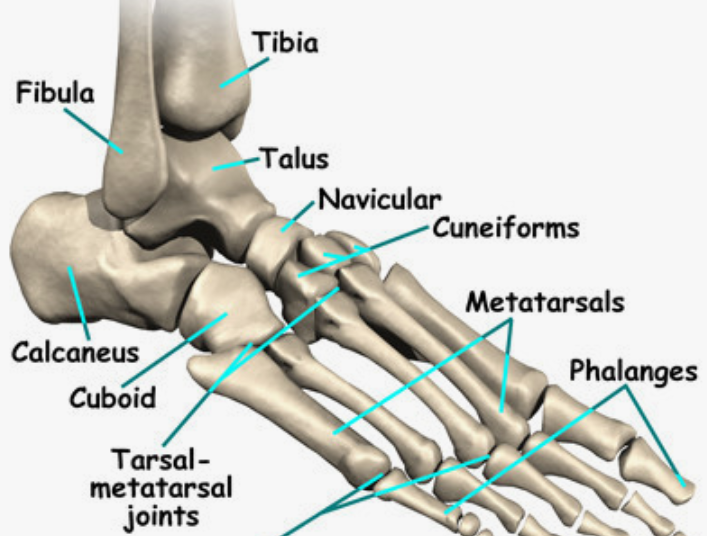 발등의 가장 높은 부위에 돌출된 뼈는 입방골 그 아래 주상골이 있습니다