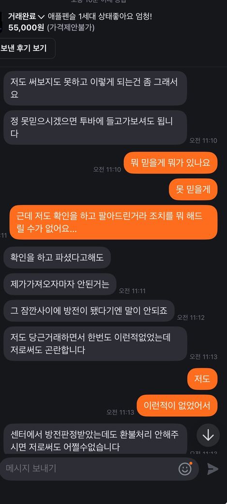 분명히 문제 없었는데 일주일이 지나서야 연락이 와서 이러네요 차라리 당일에 확인해서 그랬으면 모르겠는데… 법적 조치 취한다네요..