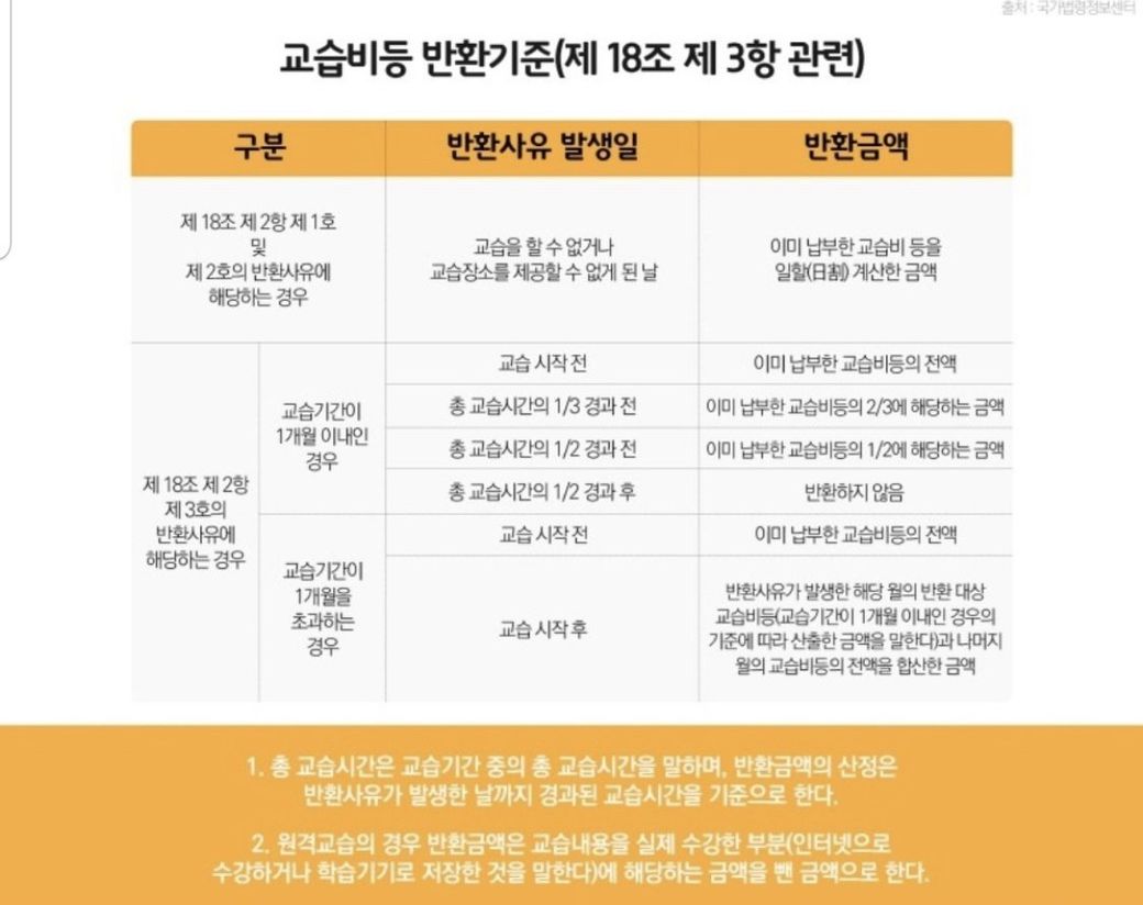 교습비 반환기준을 보면 1/3 경과 전에는 2/3 환불받는다고 나와있는데 그럼 받을 수 있는 돈이 너무 적어서요.