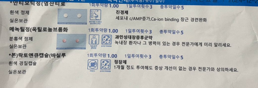 과민성대장증후군 때문에 내과에서 약을 처방받았습니다. 이 약을 점심에 처음으로 한 번 먹고 처방전을 봤는데 메녹틸정이 녹내장 환자의 경우 전문가에게 미리 알리라고 적혀있어서요. 제가 녹내장 환자는 아닌데 녹내장 걸릴 위험이 높아 안과에서 반년~1년에 한 번씩 주기적으로 녹내장 검사를 받거든요... 점심에 한 번 먹긴 했는데 괜찮은가요?