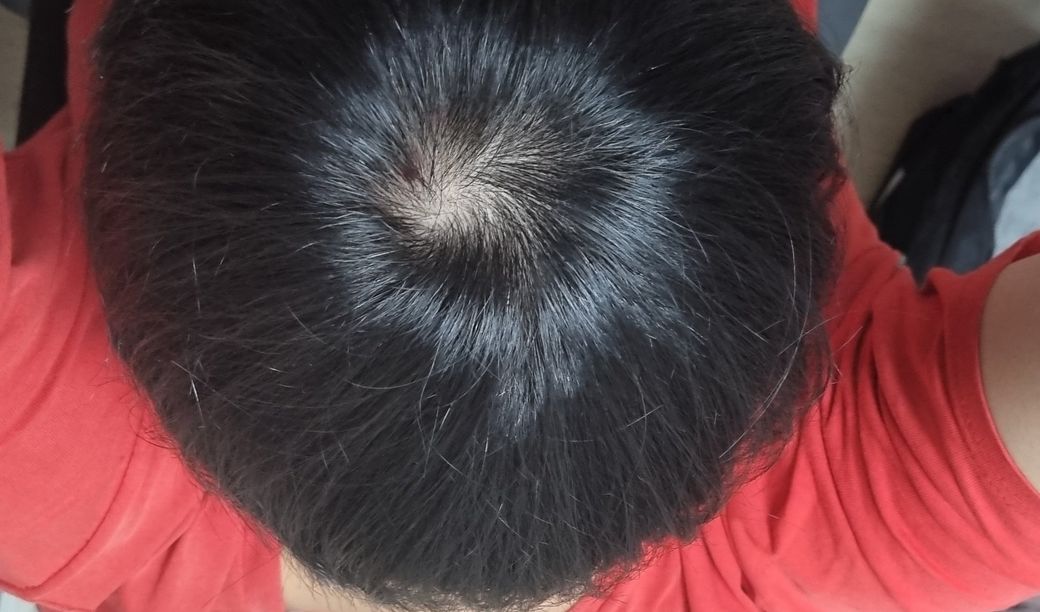 올리신 사진에서 원형 탈모를 의심할만한 소견은 하나도 없습니다. 원래 정수리 부위에는 모발이 없는 부위가 있으며, 해당 소견으로는 탈모증을 의심할 수 없습니다. 크게 걱정할 필요 없습니다.