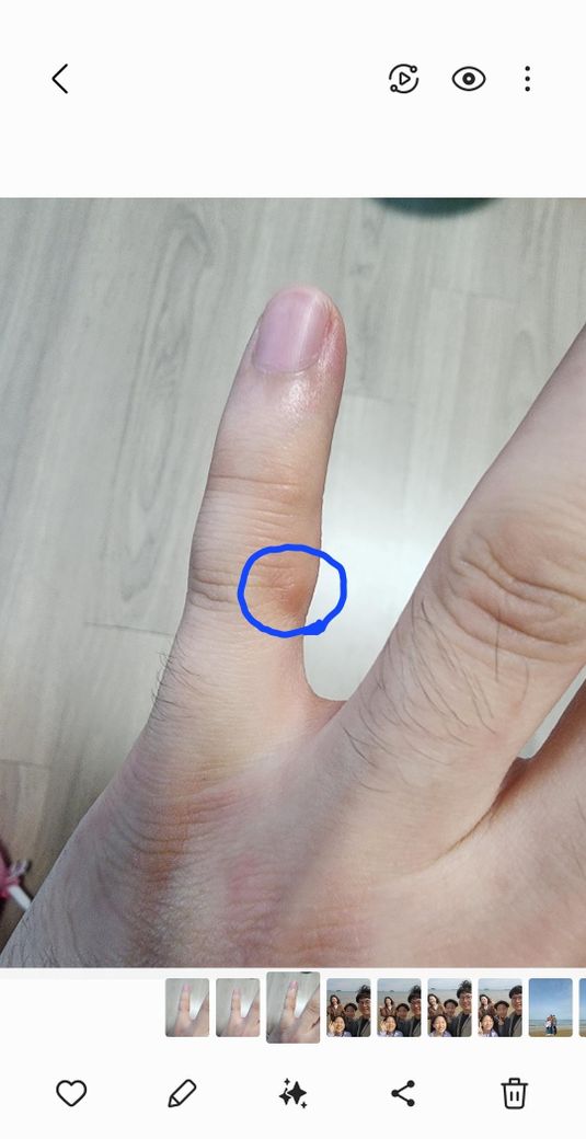 사진으로는 정확한 진단 불가능하며 병원 방문하셔서 직접 육안으로 진료 보셔야 합니다사진 속 새끼손가락 옆에 동그랗게 튀어나온 부분은 통증 없이 움직임에 제한도 없다면, 피지낭종(지방종), 건초낭종(결절종), 혹은 관절 부위의 작은 물혹일 가능성이 높습니다. 특히 손가락 주변에는 반복적인 손 사용이나 미세한 외상 등으로 인해 힘줄 주변이나 관절막에서 액체가 차오르며 결절이 생기는 경우가 흔해요