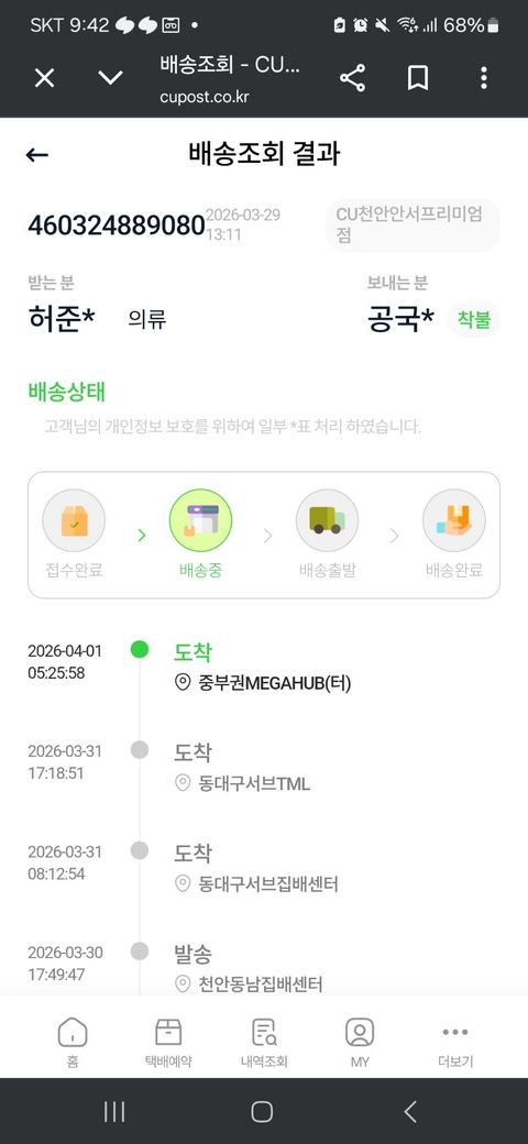 판매자가 cu편의점을 통해서 택배를 발송했는데