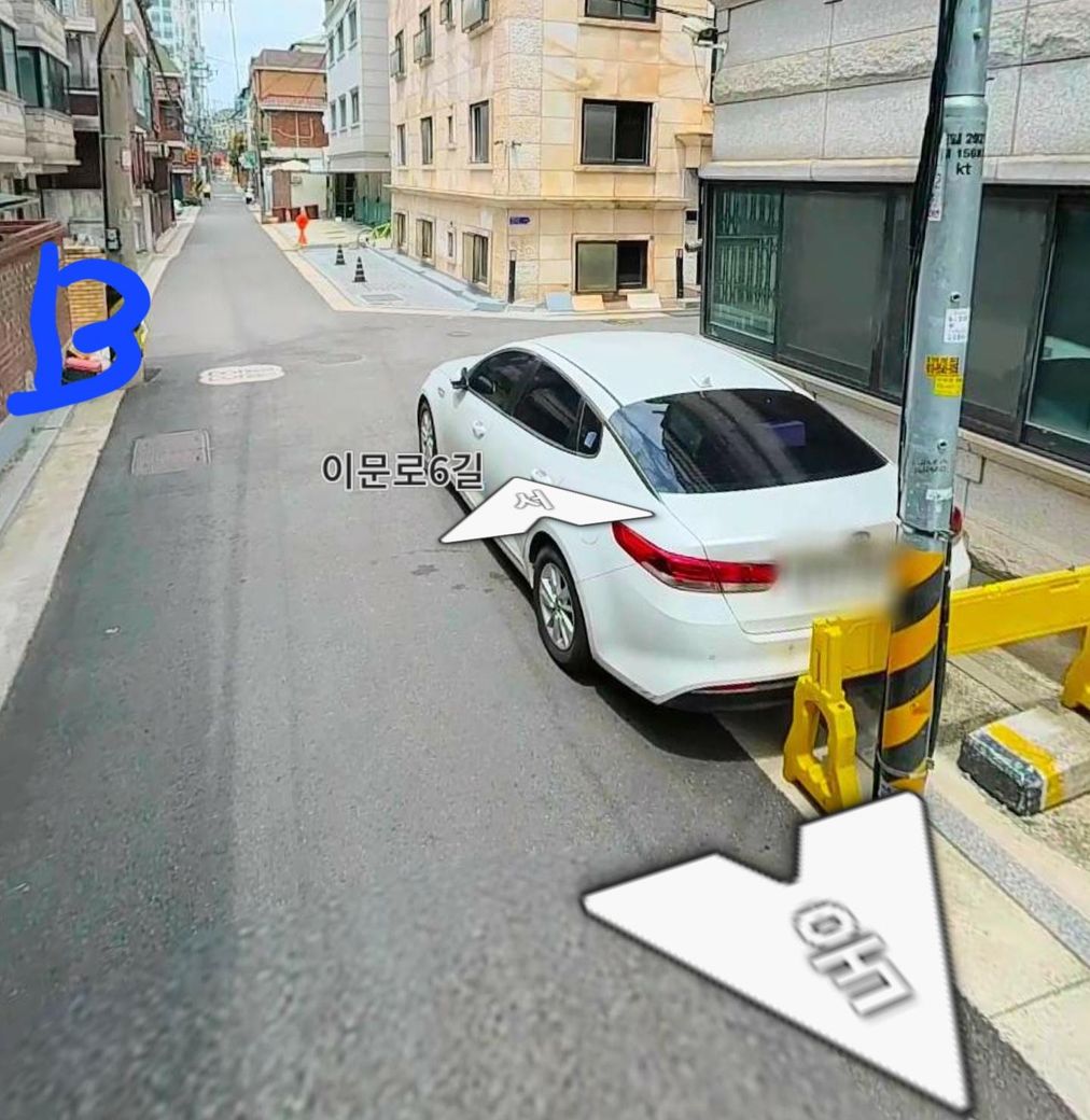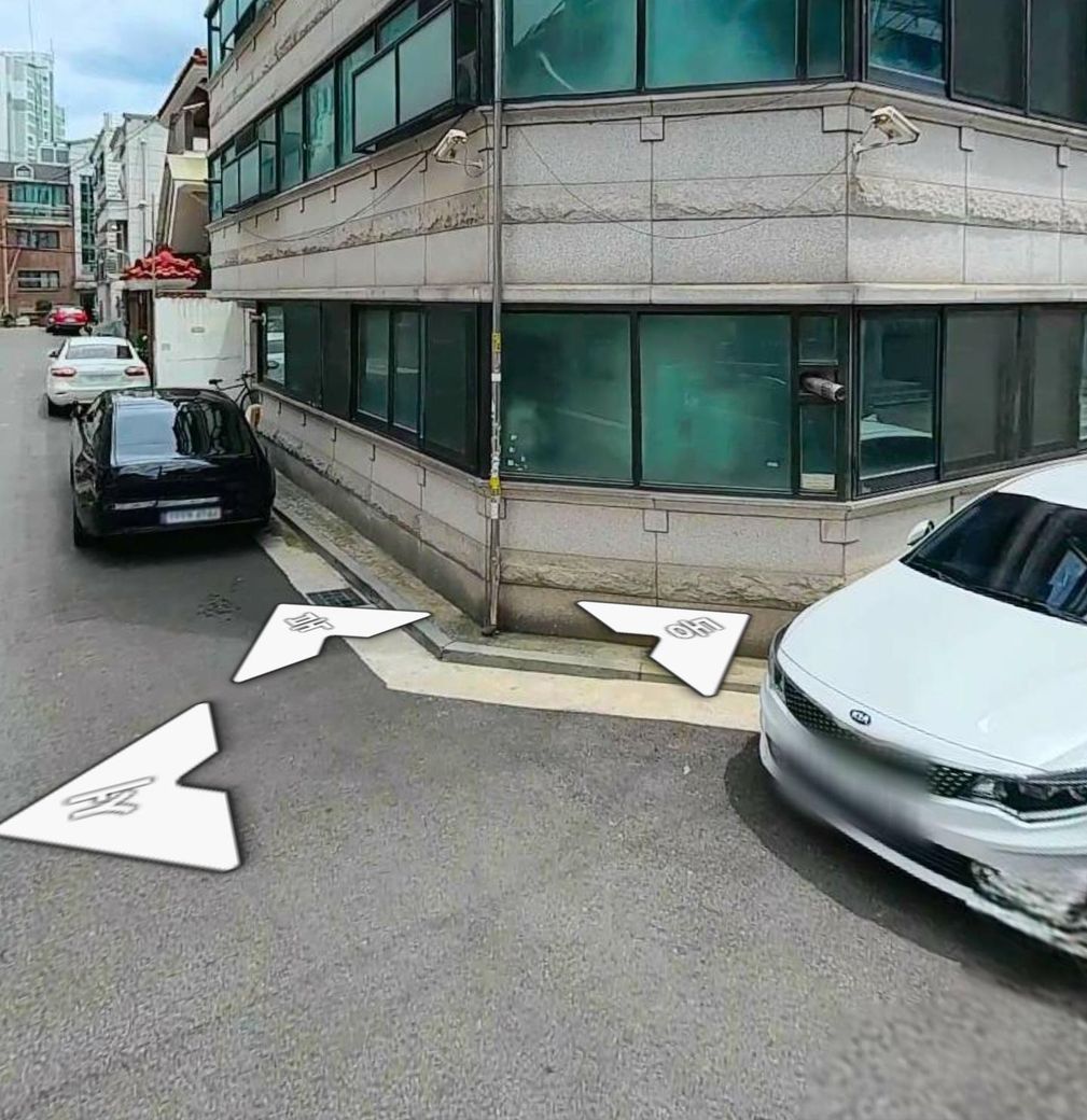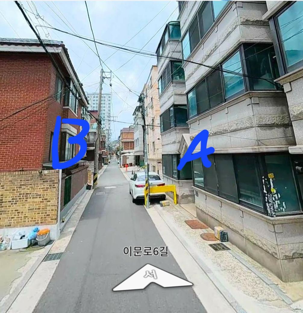 맞은편 B건물 라인쪽은 도로가 좁아 주차가 불가하여 거주하고 있지 않은 A건물에 주차를 하는 경우가 많습니다.